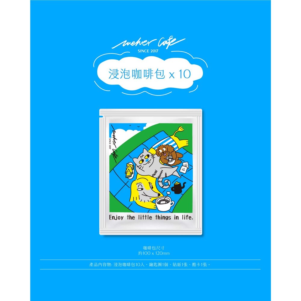 (限量)盲盒浸泡包咖啡禮盒1盒 內容: *咖啡浸泡包 經典配方10入 *酷卡x1 *貼紙x1 *限量隨機款鑰使圈 (有三款)x1